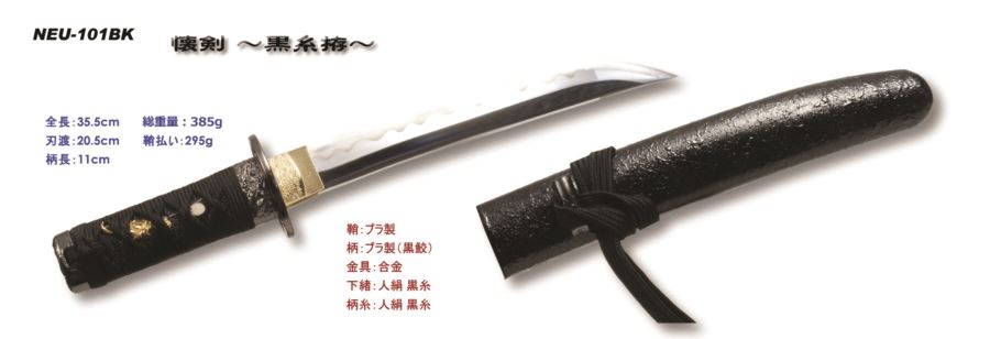 ▼内容懐剣シリーズ 黒糸 拵 タイプ 短刀▼セット内容・模造刀×1・専用刀袋付▼サイズ全長35.5cm/刃渡り20.5cm/柄長11cm▼重量総重量:385g鞘払い:295g▼材質鞘:朴の木柄:プラ製(黒鮫)金具:合金下緒:人絹 黒糸柄糸:人絹 黒糸※作業工程上、細かなスリ傷等が入る場合がございますが、職人の手作りの為、予めご了承ください。