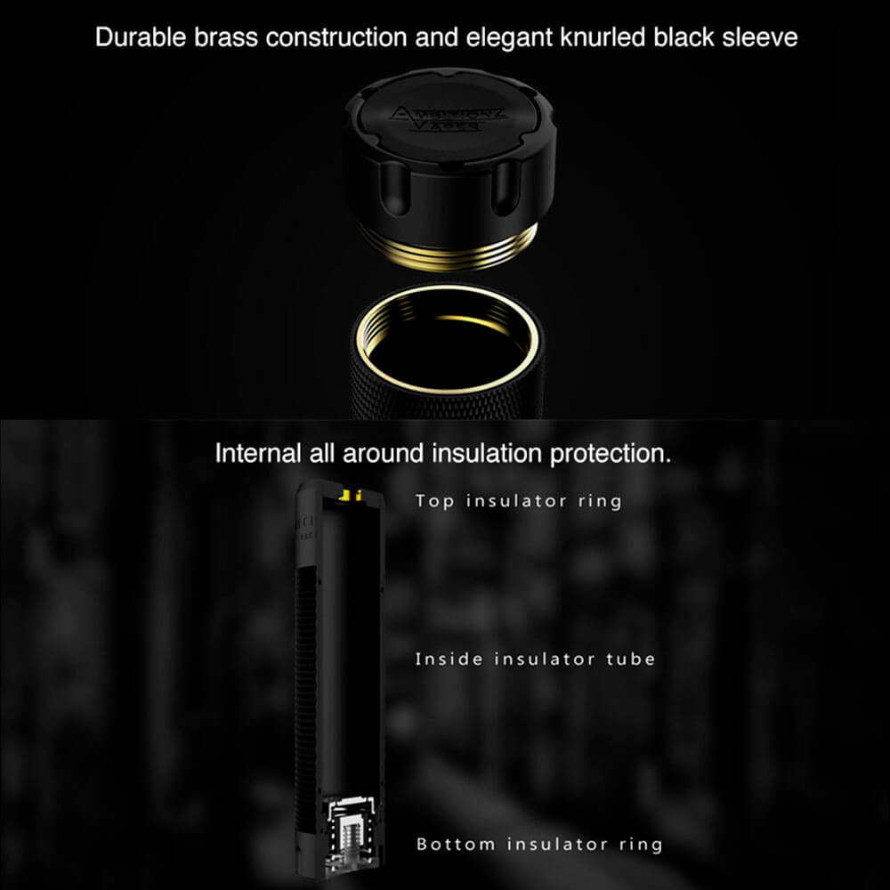 MechLyfe & AmbitionZ VapeR - Arcless 21700 Mech Mod サイズ 25mm x 91mm バッテリー 18650/20700/21700 x 1本(別売) スレッド ハイブリッド510接続 素材 ブラス 【ご注意】 こちらの製品は使用方法を理解したうえでお買い求めください。